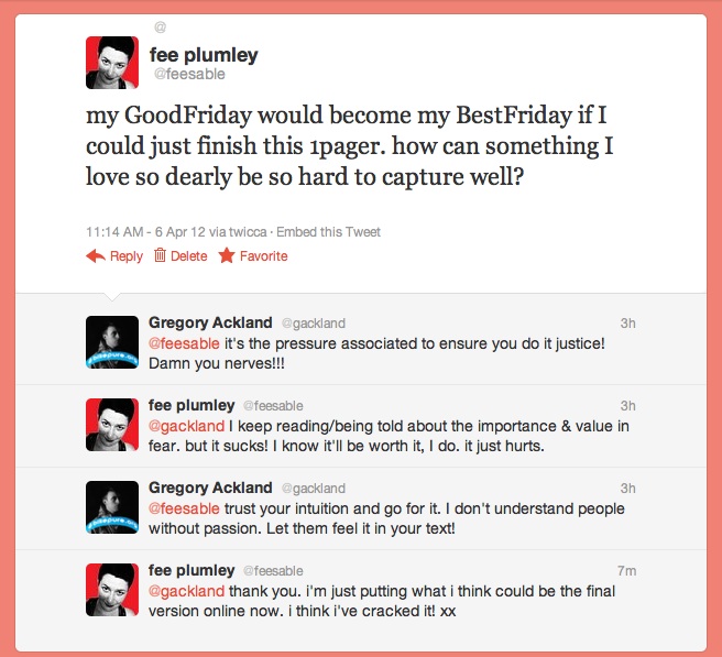 A few weeks ago I drafted yet another version with the resolve to send it to friends and colleagues for feedback. I even did my crowdsourcing thing and shouted out on Facebook to see who might want to help out by offering feedback. That one pager was actually three pages. It went in a totally different direction to my usual approach and I kind of knew it wasn’t right. The feedback I got (thank you all so very much) was wonderful; supportive, encouraging and yet critical in an extremely constructive and helpful manner. But I still couldn’t edit that down to make it better. I had to start YET again. And so I procrastinated. Again.