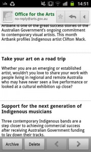 The fact that funding usually favours the ‘mainstream’ over the ‘niche’ is not news. But that such blatantly biased messages are being transmitted from the Office for the Arts is just appalling – especially considering Minister Crean’s focus on regional and remote communities.