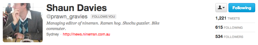 5000th twitter follower @prawn_gravies AKA Shaun Davies