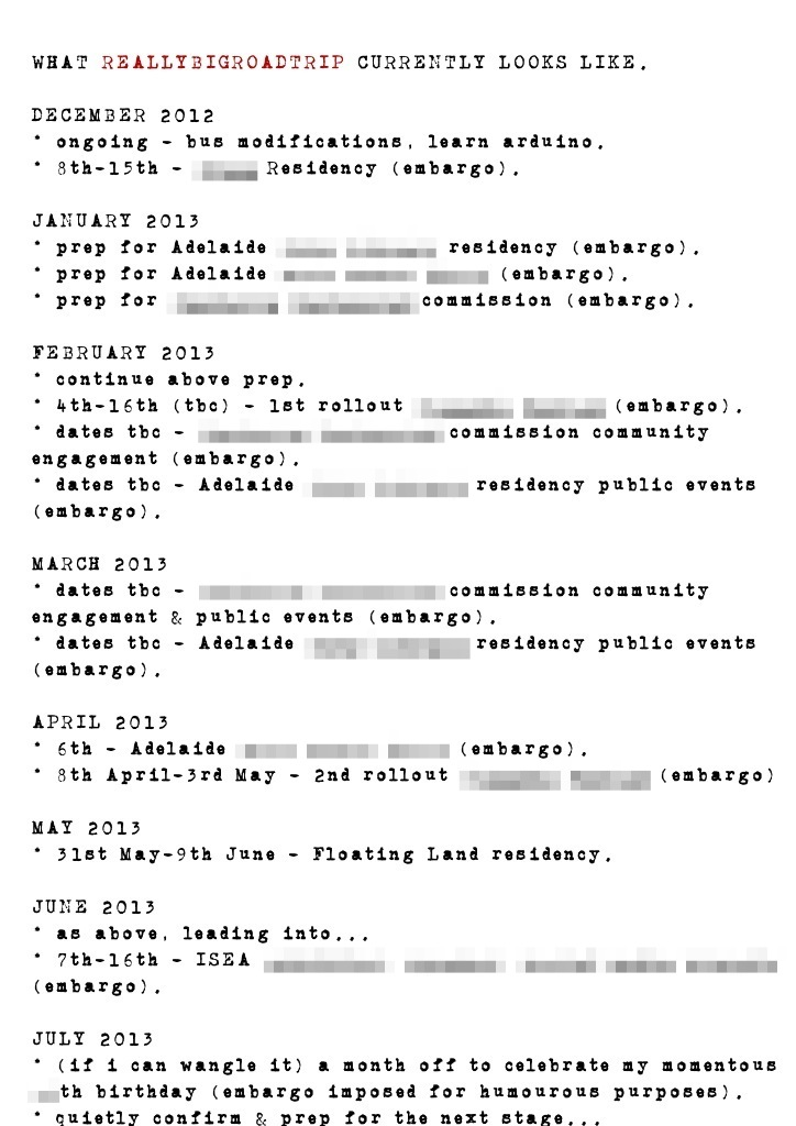 The basic ‘plan’ is to get a bus and drive around Australia making and sharing digital art with everyone we meet along the way. There are a few key ‘stakes in the ground’ in terms of destination which will be announced here and discussed (a lot) via my social feeds. Namely these are twitter, facebook, instagram, G+, the agenda page on here and the newsletter. If you ever wonder what I’m up to and you haven’t seen a post here then go find me on one of those feeds.
